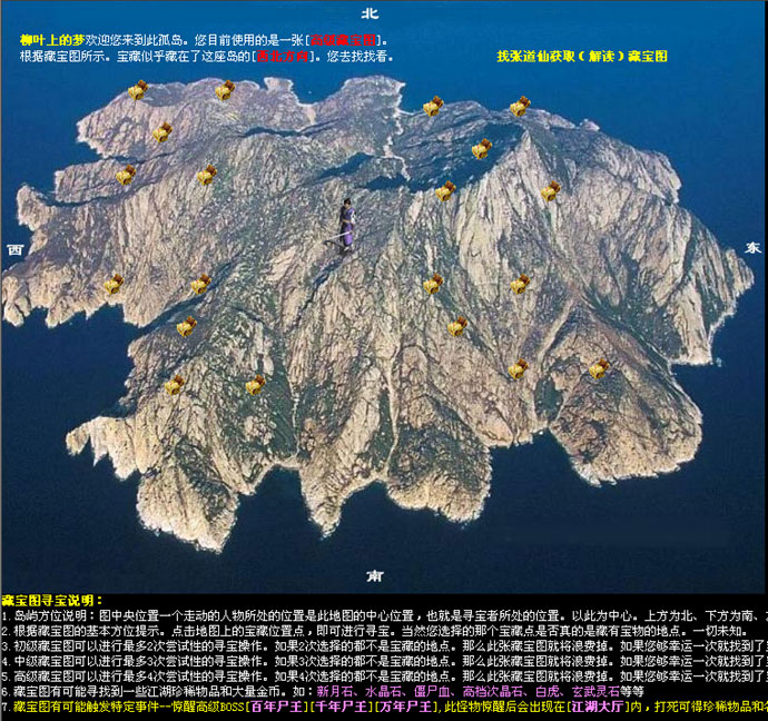 ①.玩家通过藏宝图任务随机获得:初级、中级和高级3种藏宝图。然后根据藏宝图的提示进行寻宝。可玩性极强。。