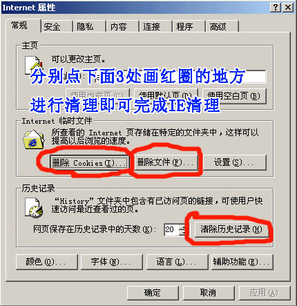 IE清理方法详细说明.. 类别:江湖 发布人:(柳叶上的梦) [2006-11-17 下午 10:26:53] 浏览次数:1250 1.在桌面找到Internet Explorer点右键,然后选择属性:如下图: . 2.选择属性后,具体操作如下图: . 操作完上面3个地方后。再点应用,在点确定。。OK了。 楚天江湖 www.sjjh.com